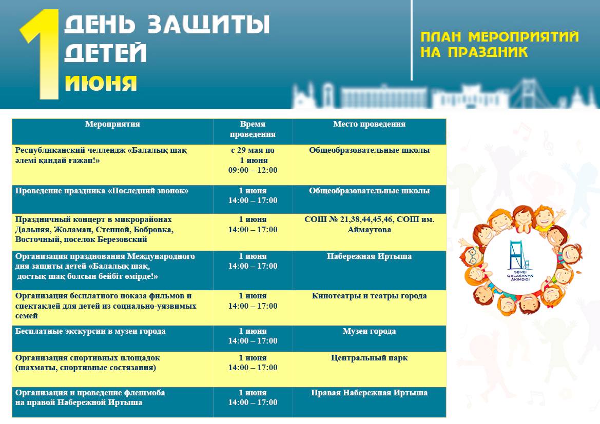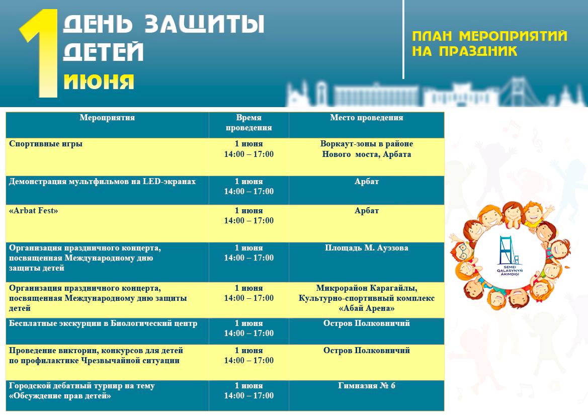 Опубликована программа празднования Дня защиты детей в Семее