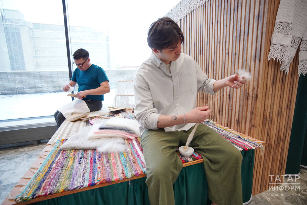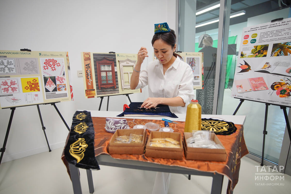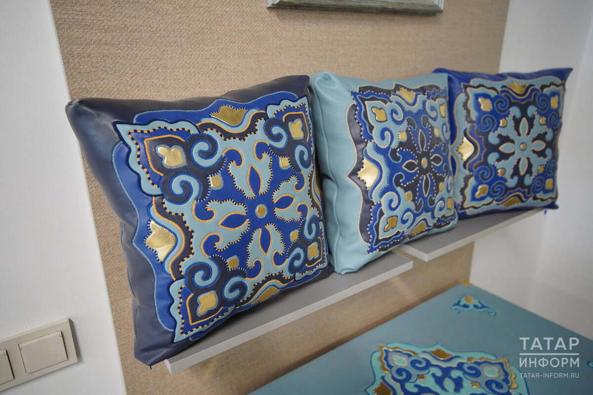 Отдельное пространство заняла мастерская кожаной мозаики, где создают предметы интерьера и декоративные изделия из натуральной кожи. Здесь можно будет увидеть сундуки, панно, настенные ковры и подушки, выполненные в этой редкой технике. Среди работ – и уникальные книги, изготовленные специально для президентов стран БРИКС: они полностью выполнены из кожи с использованием выжигания и ручной росписи. В мастерской также представлена книга «Шурале» по произведению Габдуллы Тукая на английском языке, выполненная в той же технике.