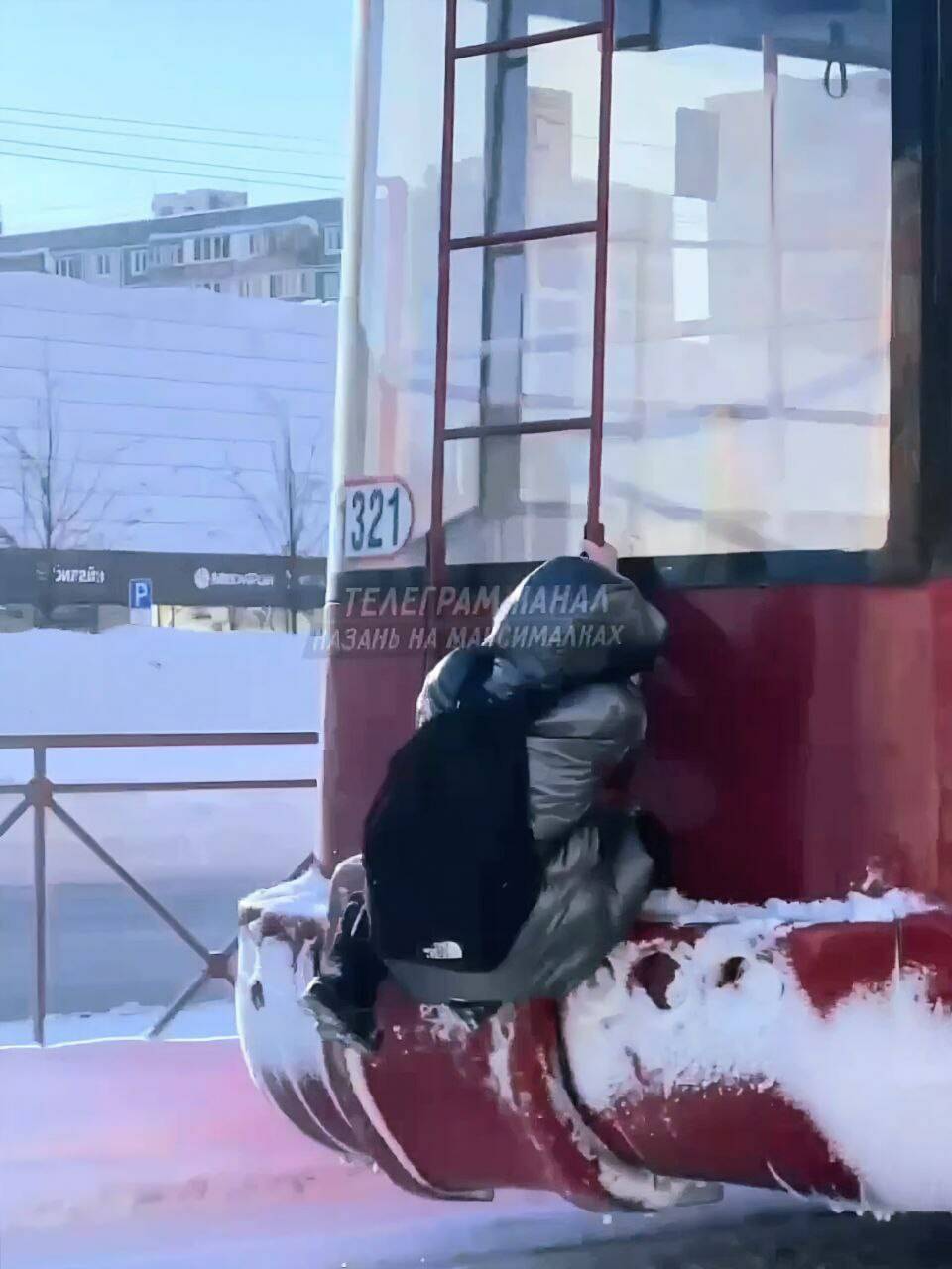 В «Метроэлектротрансе» сообщили о новых случаях зацепинга в Казани – опасного проезда снаружи трамвая. Нарушителем оказался школьник, которого удалось сфотографировать.