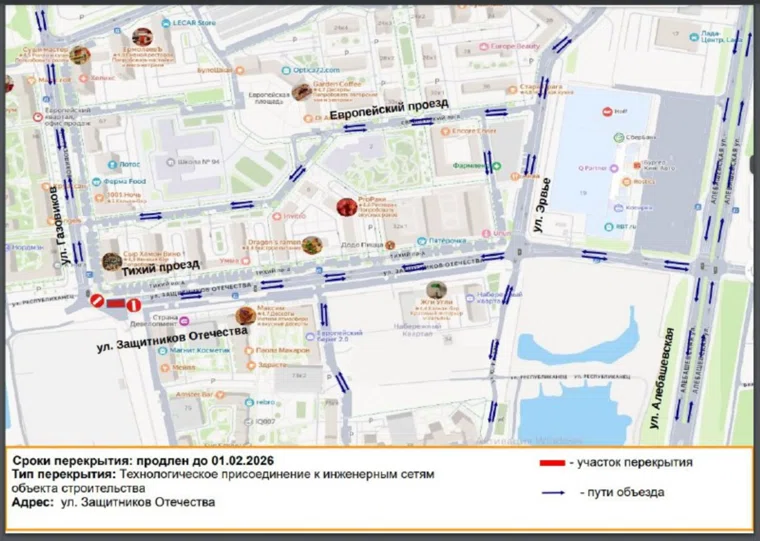 «В связи с производственной необходимостью при выполнении строительно-монтажных работ по строительству тепловой сети для подключения к системе теплоснабжения объекта капитального строительства до 1 февраля продлен срок прекращения движения транспортных средств по автомобильной дороге ул. Защитников Отечества (в районе перекрестка с ул. Газовиков). Участников дорожного движения просим обращать внимание на знаки», — рассказали в мэрии.