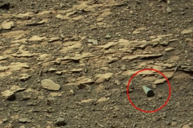 На поверхности Марса обнаружили необычный предмет, по виду напоминающий артиллерийский снаряд. Длина объекта — около 20 см.