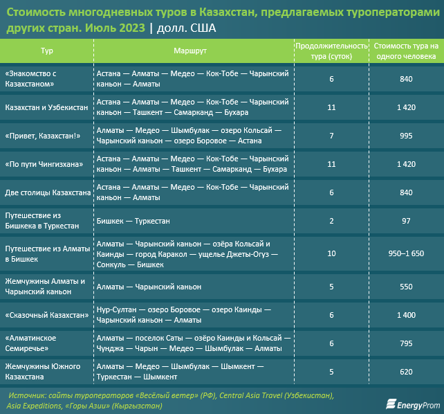 В сети действительно много пакетных предложений зарубежных туроператоров, которые рекламируют разные варианты путешествий по Казахстану. Иностранные компании из России, Кыргызстана, Узбекистана предлагают как внутренние автобусные маршруты только в пределах регионов Казахстана, так и международные туры. И те, и другие вполне могли бы обслуживать и казахстанские транспортные компании и туроператоры.
