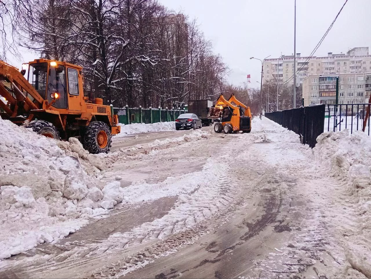 В Городском округе Пушкинский продолжается усиленная работа по уборке снега с улиц и крыш зданий