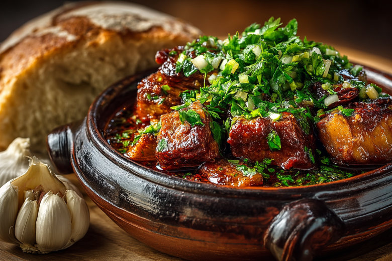 Каурма — блюдо со сложной судьбой и множеством интерпретаций от Балкан до Кавказа. Но именно грузинский вариант с томленой свининой и яркой пастой из чеснока и уцхо-сунели стал для меня эталоном вкуса.