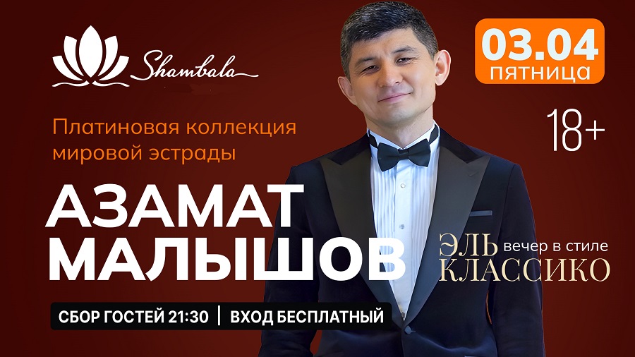 Музыкальный вечер, который перенесёт гостей в атмосферу золотого века эстрады. Азамат Малышов — артист с глубоким, проникновенным голосом — исполнит бессмертные композиции Фрэнка Синатры, Элвиса Пресли и другие шедевры, ставшие символами стиля и утончённого вкуса. Программа для тех, кто ценит живой вокал, безупречную подачу и вечер, наполненный ностальгией по лучшим мелодиям XX века.