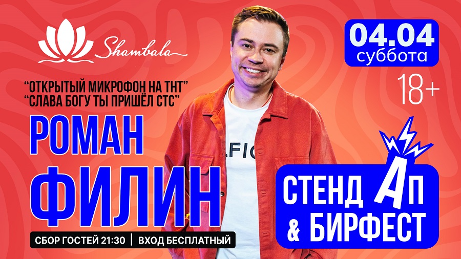На сцене «Шамбалы» — комик, чьи выступления давно вышли за рамки КВН и покорили федеральные каналы. Роман Филин — двукратный финалист Высшей лиги, чемпион Премьер-лиги, участник шоу «Открытый микрофон» на ТНТ, а также автор сценариев для проектов «Слава Богу, ты пришёл!» и «Roast battle». Его монологи — это смесь остроты, самоиронии и точных жизненных наблюдений, которые заставят смеяться даже самых серьёзных зрителей.